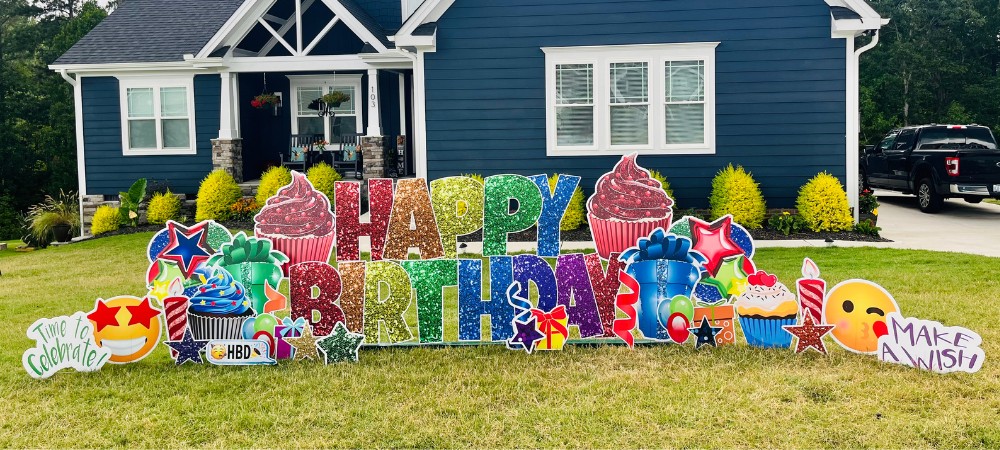 At The Yard Card Company, our cards are Extraordinary! We design one-of-a-kind yard card greetings for any occasion, from birthdays and graduations to holidays and milestones. Imagine colorful characters, fun shapes, and personalized messages to make your surprise truly special. Everyone will love it! We have packages to fit all budgets, so let The Yard Card Company show someone you care! Contact us today to create a lasting memory!
